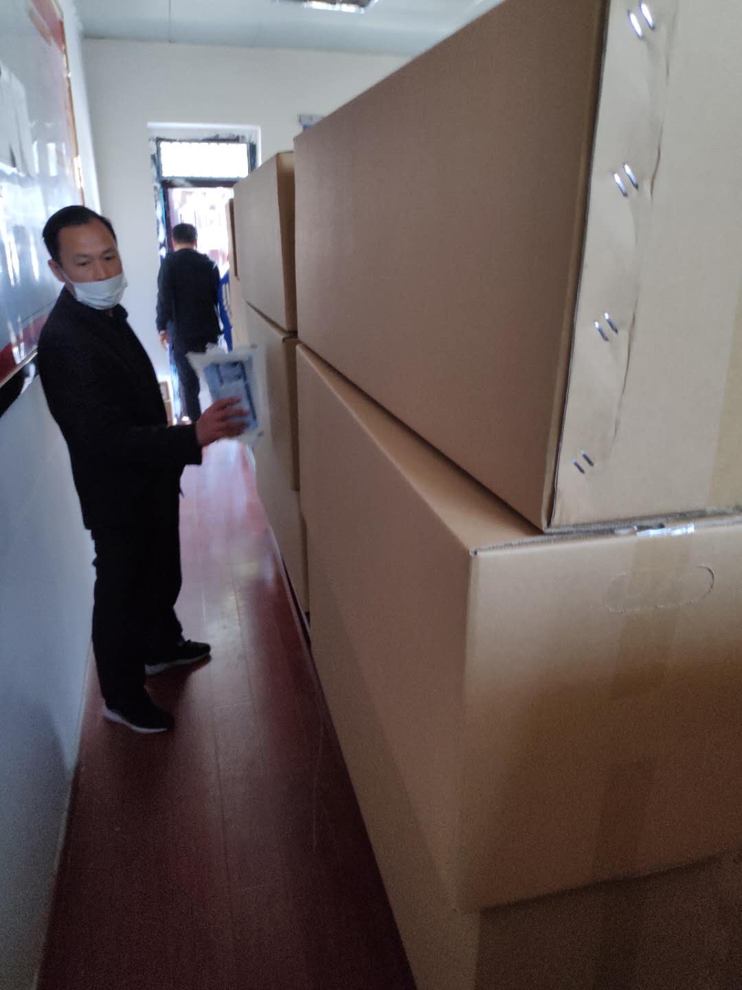 2020年4月12日上午,東昱集團(tuán)下屬子公司森海商貿(mào)將采購(gòu)的一次性醫(yī)用口罩16萬(wàn)只送達(dá)杜集區(qū)教育局指定地點(diǎn)交付使用。