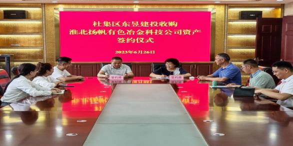 29 06月2023 了解詳情 集團公司資產收購項目舉行簽約儀式 6月26日上午,在安徽淮北杜集經濟開發區管理委員會會議室,在開發區管委會負責人員現場見證下,集團公司與淮北揚帆有色冶金科技公司就資產收購項目舉行簽約儀式,集團公司副總經理博超出席并簽字。